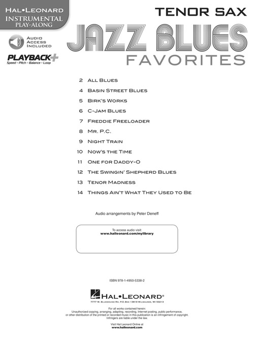 Arranjos para o instrumentista iniciante. Áudio Online disponível para download ou streaming. Basin Street Blues • C-Jam Blues • Freddie Freeloader • Night Train • One for Daddy-O • The Swingin' Shepherd Blues • Tenor Madness • e outras!!!