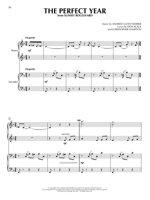 Eight easy piano duet arrangements of Andrew Lloyd Webber's best songs!