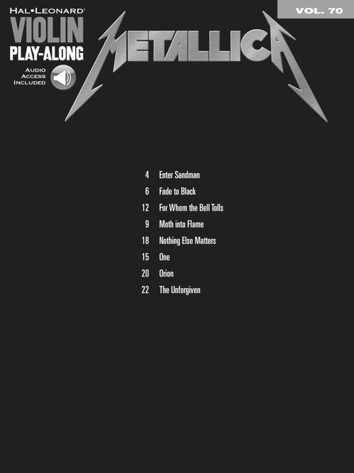 A série Violin Play-along vai ajudá-lo a tocar suas canções favoritas de forma rápida e fácil. Siga a partitura, download ou streaming o áudio online, para ouvir como soa o som do violino e, então, toque junto usando as faixas de play-along, também disponíveis online. Enter Sandman • Fade to Black • For Whom the Bell Tolls • Moth into Flame • Nothing Else Matters • One • Orion • The Unforgiven.