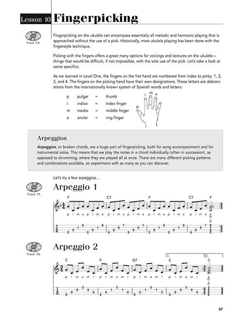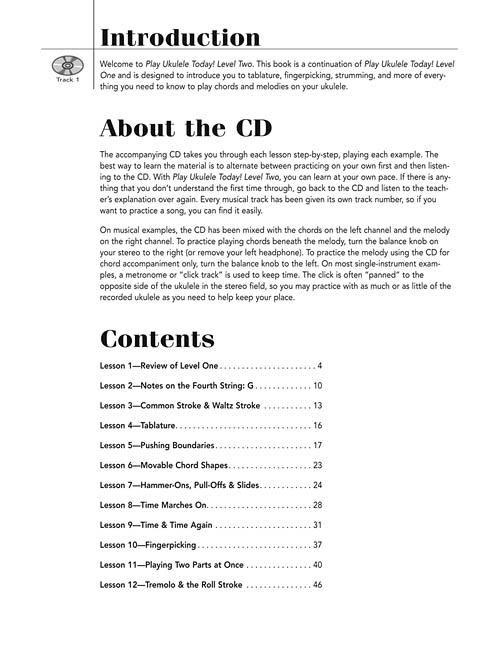 Learn at your own pace and open the door to the world of ukulele music! This second level book picks up where Level One left off and includes over 90 more great songs and examples. Topics covered include: picking, fingerpicking and strumming • playing tips and techniques • standard notation and tablature.