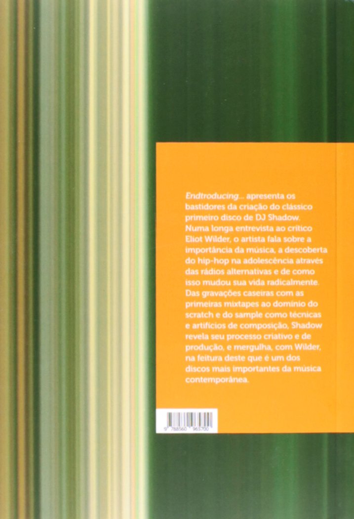 Endtroducing… – DJ Shadow apresenta os bastidores da criação do clássico primeiro disco de DJ Shadow. Numa longa entrevista ao crítico Eliot Wilder, o artista fala sobre a importância da música, a descoberta do hip-hop na adolescência através das rádios alternativas e de como isso mudou sua vida radicalmente. Das gravações caseiras com as primeiras mixtapes ao domínio do scratch e do sample como técnicas e artifícios de composição, Shadow revela seu processo criativo e de produção, e mergulha, com Wilder, na feitura deste que é um dos discos mais importantes da música contemporânea.
