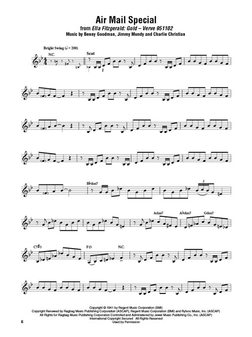 Instrumentistas, divirtam-se. Pela primeira vez você poderá tocar os “SCAT” de algumas lendas do Jazz de todos os tempos: Karrin Allyson, Louis Armstrong, Ann Hampton Calloway, Ella Fitzgerald, Roberta Gamarini, Dianne Reeves, Mel Tormé, Sarah Vaughan, e outros! E é claro que cantores e cantoras também encontrarão muita diversão. Omnibooks são coleções bastante abrangentes que trazem transcrições precisas diretamente das gravações. Também incluem símbolos dos acordes, marcações de metrônomo e informações das gravações originais. Este livro traz arranjos de 60 canções, exatamente como foram gravadas, incluindo: Air Mail Special • All Blues • Bernie's Tune • Blue Skies • Centerpiece • Flying Home • Gee Baby, Ain't I Good to You • I Got Rhythm • It's All Right with Me • Just Friends • Lullaby of Birdland • Oh, Lady Be Good! • Old Devil Moon • On the Sunny Side of the Street • Rockin' in Rhythm • Shiny Stockings • Sing, Sing, Sing • Stolen Moments • A-Tisket, A-Tasket • West Coast Blues • e outras.
