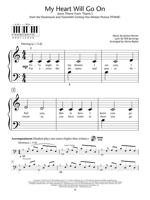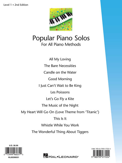 12 songs with teacher accompaniments: All My Loving • The Bare Necessities • Candle on the Water • Good Morning • I Just Can't Wait to Be King • Les Poissons • Let's Go Fly a Kite • The Music of the Night • My Heart Will Go On (Love Theme from Titanic) • This Is It • Whistle While You Work • The Wonderful Thing About Tiggers.