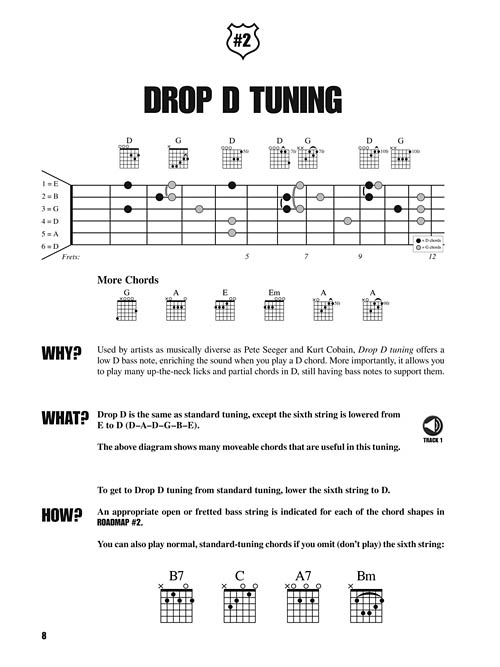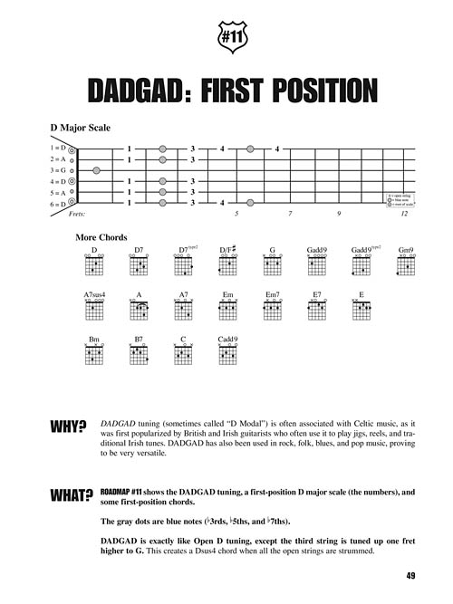 A thorough guide to the most widely used tunings! Tunes and exercises that illustrate each technique are written in tab and music and played on the CD featuring 50 demo tracks. These essential fretboard patterns are roadmaps that all guitarists need to know and use to play in alternate tunings. Learn to: solo and play backup in D rop D, Open G, Open D, DADGAD, Open A, and Open E tunings; play a variety of lead guitar styles and songs (acoustic and electric) in open tunings; play chords and progressions anywhere on the fretboard, in all keys, in many tunings; and more. Each chapter presents a fretboard pattern and shows how to use it, along with playing tips and guitar insights. An absolute beginner can follow the diagrams and instruction from the beginning. Intermediate and advanced players can use the chapters non-sequentially to increase their understanding of the guitar.