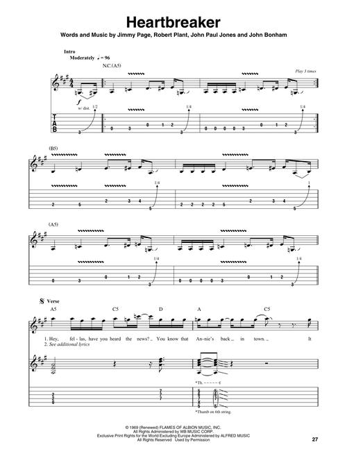 Transcrições precisas e fáceis de ler, na partitura e tablatura, e faixas de áudio profissionais e personalizáveis acessadas on-line. A interface de áudio online interativa inclui: controle de tempo; Looping; Botões para ligar ou desligar cada instrumento; marcador de leitura da partitura. As faixas de áudio também podem ser baixadas. Baba O'Riley • Born to Be Wild • Dream On • Fortunate Son • Heartbreaker • Hotel California • Jet Airliner • Layla • More Than a Feeling • Night Moves • Rhiannon • Runnin' Down a Dream • Start Me Up • Sultans of Swing • Sweet Home Alabama.