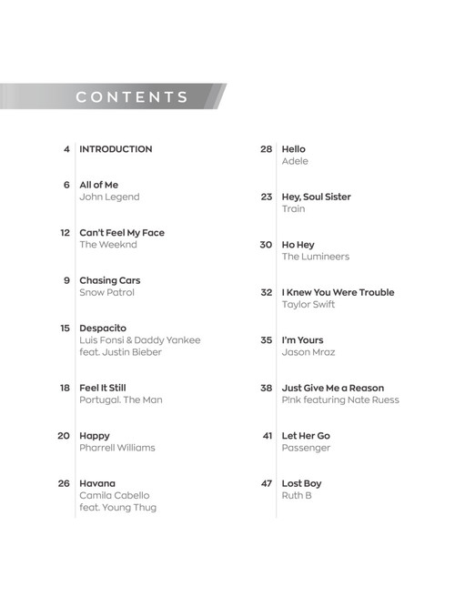 A série Instant Piano Songs irá ajudá-lo a tocar suas músicas favoritas com rapidez e facilidade! Comece com a melodia em sua mão direita e adicione acordes básicos à esquerda quando estiver pronto. Nomes de notas dentro de cada nota na partitura aceleram o processo de aprendizado, e os padrões de ritmo opcionais levam sua execução ao próximo nível. Faixas de acompanhamento on-line também estão incluídas. Streaming ou download as faixas usando os códigos únicos dentro de cada livro e, em seguida, toque para criar confiança e ótimo som! Esta edição inclui 30 sucessos da música pop. All of Me • Feel It Still • Havana • Ho Hey • I'm Yours • Just Give Me a Reason • Let Her Go • Million Reasons • 100 Years • Perfect • Riptide • 7 Years • Stay with Me • Viva La Vida • What Makes You Beautiful • e outras!!!