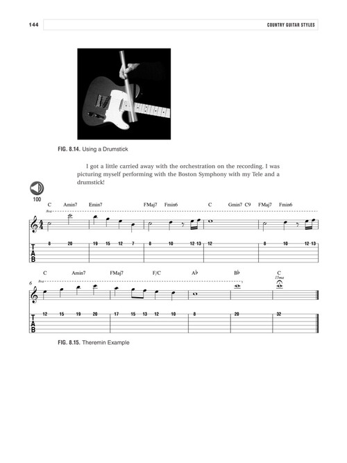 Learn those beautiful hot licks and fingerpicking patterns of country music. You'll learn all about the various types of country music, from classic to current–from Western Swing to bluegrass and everywhere between. Get beyond the cowboy chords to more complex arrangements, signature opening licks, and solos that characterize today's country hits. Online audio tracks illustrate these licks and concepts in context, and the book shows you exactly how to play them. You will learn how to play: Single and double-note lead style; Rhythm guitar styles; String bending, including single-, double-, and triple-note bends; Triadic pedal steel styles; Fingerpicking technique; Western swing style; Bluegrass lead and rhythm style; Sound effects, to make your guitar sound like a marimba, Theremin, banjo, and more!