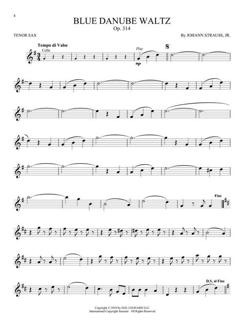 Trasncrições para sax tenor de temas clássicos conhecidos, pefeitas para iniciantes. Acompanha áudio, disponível on-line, com demonstrações e backing tracks para tocar junto; incluindo: Blue Danube Waltz (Strauss) • Can Can (from Orpheus in the Underworld) (Offenbach) • Jesu, Joy of Man's Desiring (J.S. Bach) • Morning Mood (from Peer Gynt) (Grieg) • Ode to Joy (from Symphony No. 9) (Beethoven) • William Tell Overture (Rossini) • e outras.