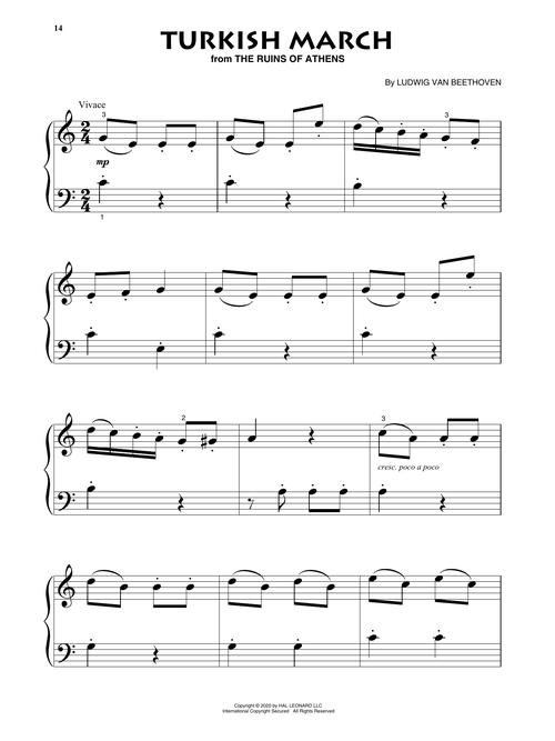 Os iniciantes podem começar suas aventuras tocando piano com os clássicos de Ludwig van Beethoven nesta coleção solo para piano. As seleções incluem: Ecossaise in G Major, WoO 23 • Für Elise, WoO 59 • Minuet in G Major • Piano Sonata No. 14 in C# Minor (“Moonlight”) Op. 27, No. 2, 1st Movement Theme • Ode to Joy • Russian Folk Song • Symphony No. 5 in C Minor, 1st Movement Excerpt • Symphony No. 6 in F Major (“Pastoral”), 1st Movement Excerpt • Symphony No. 7 in A Major, 2nd Movement (Allegretto) • Turkish March