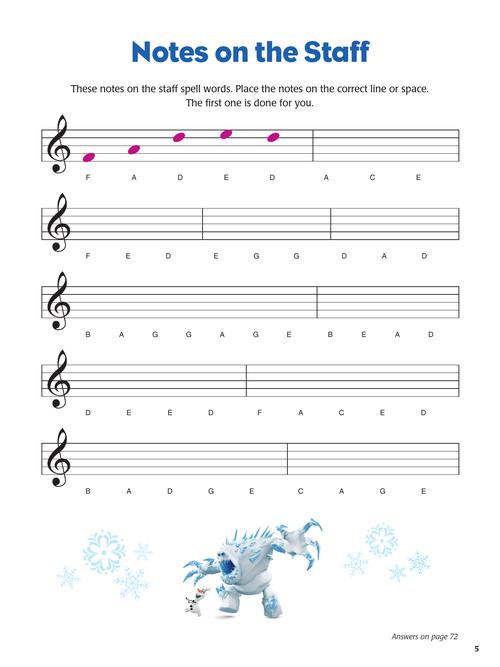 Frozen fans will love this full-color activity book featuring songs from both of the movies, games, puzzles and other music activities. Songs include: All Is Found • Do You Want to Build a Snowman? • For the First Time in Forever • In Summer • Into the Unknown • Let It Go • Love Is an Open Door • The Next Right Thing • Some Things Never Change • When I Am Older • and more. This book can be used by beginning keyboard players, guitarists, vocalists, and other C instrument players.