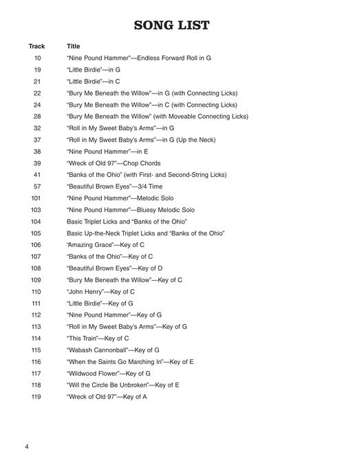This encyclopedia of licks you need to know to play 5-string bluegrass banjo includes accompaniment (backup) licks, soloing licks, as well as basic music theory, the Numbers system, listening suggestions, and many complete solos, plus 119 audio tracks available online for download or streaming to help you learn how and when to play the licks. 14 bluegrass standards are used as examples showing how to apply the licks: Amazing Grace · Bury Me Beneath the Willow · John Henry · Little Birdie · Nine Pound Hammer · Roll in My Sweet Baby's Arms · This Train · Wabash Cannonball · When the Saints Go Marching In · Will the Circle Be Unbroken · and more. Audio is accessed online using the unique code inside the book and can be streamed or downloaded. The audio files include PLAYBACK+, a multi-functional audio player that allows you to slow down audio without changing pitch, set loop points, change keys, and pan left or right.