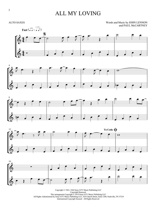 23 favorites from the Fab Four in easy duet arrangements for two instrumentalists are featured in this collection: All You Need Is Love · Eleanor Rigby · Here Comes the Sun · Hey Jude · I Want to Hold Your Hand · Penny Lane · Something · Yellow Submarine · Yesterday · and more. Arrangements work for two of the same instrument or can also be used with the other titles in the same instrument family from this series.