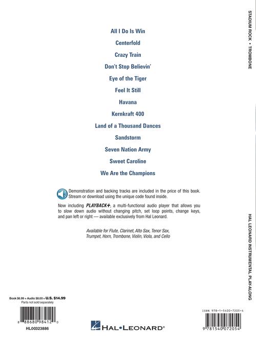13 songs guaranteed to get the fans fired up, including: Crazy Train · Don't Stop Believin' · Eye of the Tiger · Havana · Seven Nation Army · Sweet Caroline · We Are the Champions · and more. Songs are arranged for instrumentalists and feature access to great demonstration and backing tracks so they can play along and sound like a pro! Audio is accessed online using the unique code inside the book and can be streamed or downloaded. The audio files include PLAYBACK+, a multi-functional audio player that allows you to slow down audio without changing pitch, set loop points, change keys, and pan left or right.