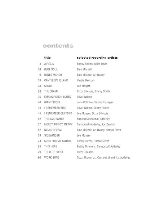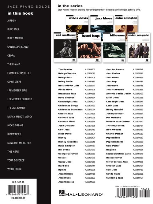 Arranjos para piano solo, incluindo: Airegin · Blue Soul · Cantelope Island · Giant Steps · I Remember Clifford · Song for My Father · This Here · Work Song · and more.