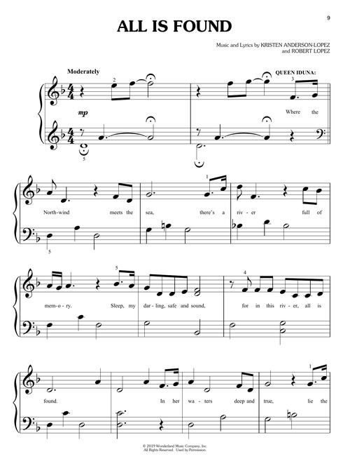 8 músicas para piano de cauda, completas com letras e belas cenas coloridas da sequência de 2019: All Is Found · Into the Unknown · Lost in the Woods · The Next Right Thing · Reindeer(s) Are Better Than People (Cont.) · Show Yourself · Some Things Never Change · When I Am Older.