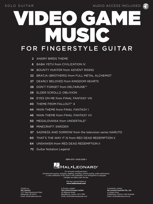 Now video game enthusiasts can play their favorite video game themes on guitar with this collection of 16 songs for solo guitar in standard notation and tablature. The book also includes access to demonstration tracks online for download or streaming. Includes: