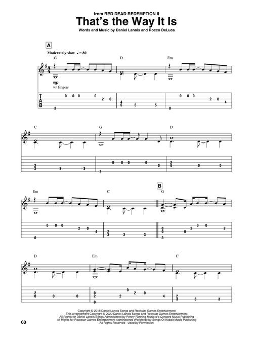 Transcrições para violão solo, na partitura e tablatura, incluindo: Angry Birds Theme • Baba Yetu (from Civilization IV) • Bounty Hunter (from Advent Rising) • Bratja (Brothers) (from Full Metal Alchemist) • Theme from Fallout® 4 • Main Theme from Final Fantasy I • Megalovania (from Undertale) • Minecraft: Sweden • Unshaken (from Red Dead Redemption II) • e outras.