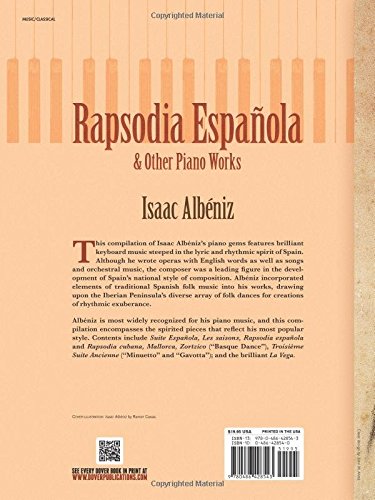 This collection of Albéniz's piano gems joins the composer's "Ibéria" and "España," with a new gathering of brilliant keyboard music steeped in the lyric and rhythmic spirit of Spain. Contents: Suite española; 6 Spanish dances; Les saisons; Rapsodia española and Rapsodia cubana; Mallorca; Zortzico (Basque Dance); Troisième Suite Ancienne (Minuetto and Gavotta); and the brilliant La Vega.