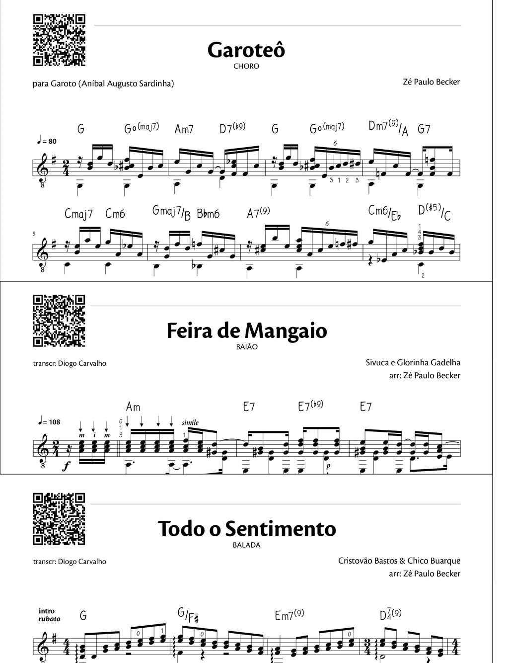 Arranjos para violão solo, na partitura, de composições de Zé Paulo Becker, além de alguns standards da música brasileira, como: Feira de Mangaio, Com Que Roupa, Todo o Sentimento e outras!!!