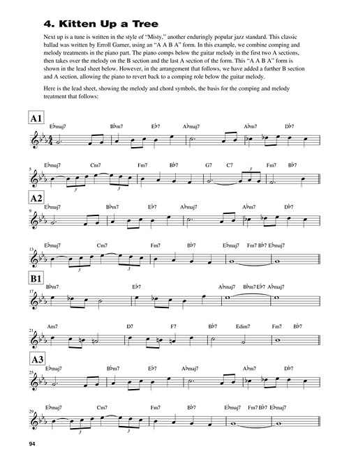 This comprehensive book with online audio is the perfect Intro to Jazz Piano. From comping to soloing, you'll learn the theory, the tools, and the techniques used by the pros. The accompanying audio tracks demonstrate most of the music examples in the book. The full band tracks feature the rhythm section on the left channel and the piano on the right channel, so that you can play along with the band. Covers: jazz chords and progressions; jazz swing and bossa nova comping; voicings and patterns; melodic treatment; soloing techniques; how to play from a fake book; and more.