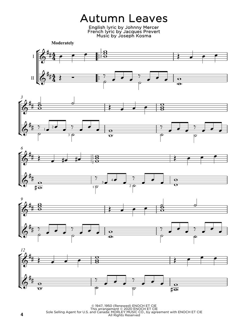 Este livro apresenta arranjos de duetos escritos na partitura, de uma variedade de canções de sucessos pop/rock, standards e temas de filmes que os violonistas podem tocar com um professor ou outro violonista. Inclui: Chopsticks • Clocks (Coldplay) • Eleanor Rigby (The Beatles) • Game of Thrones Theme • Hallelujah (Leonard Cohen) • Linus and Lucy (from A Charlie Brown Christmas) • Memory (from Cats) • Over the Rainbow (from The Wizard of Oz) • Star Wars (Main Theme) • What a Wonderful World (Louis Armstrong) • You Raise Me Up (Josh Groban) • e outras.