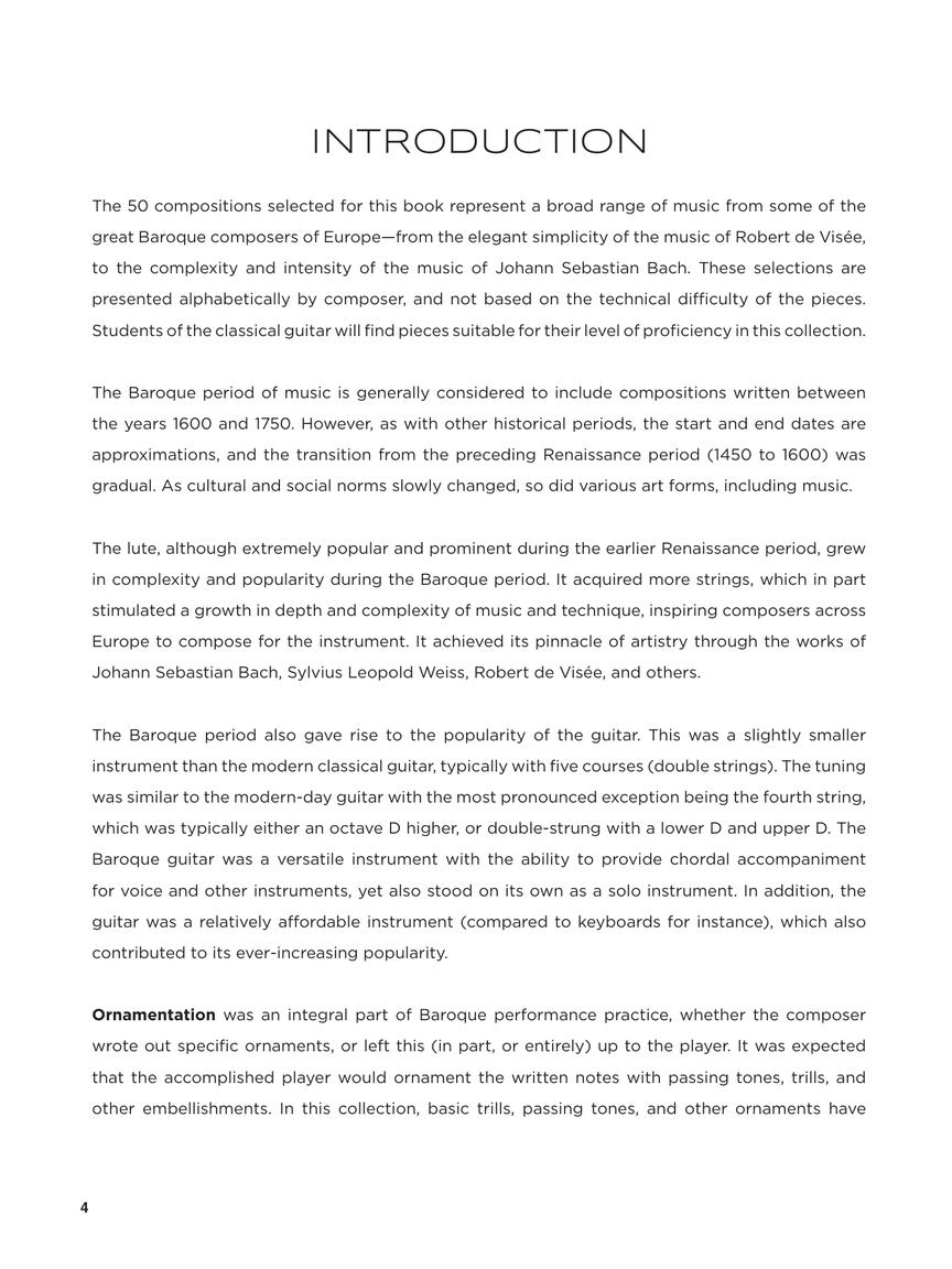 If you're looking for a comprehensive collection of the best Baroque guitar repertoire, this is it! This one-of-a-kind collection includes selections by Johann Sebastian Bach, Robert de Visée, Ernst Gottlieb Baron, Santiago de Murcia, Antonio Vivaldi, Sylvius Leopold Weiss, and more. Each piece is written in standard notation (no tab) and includes essential right- and left-hand fingerings.