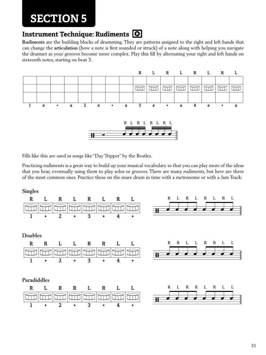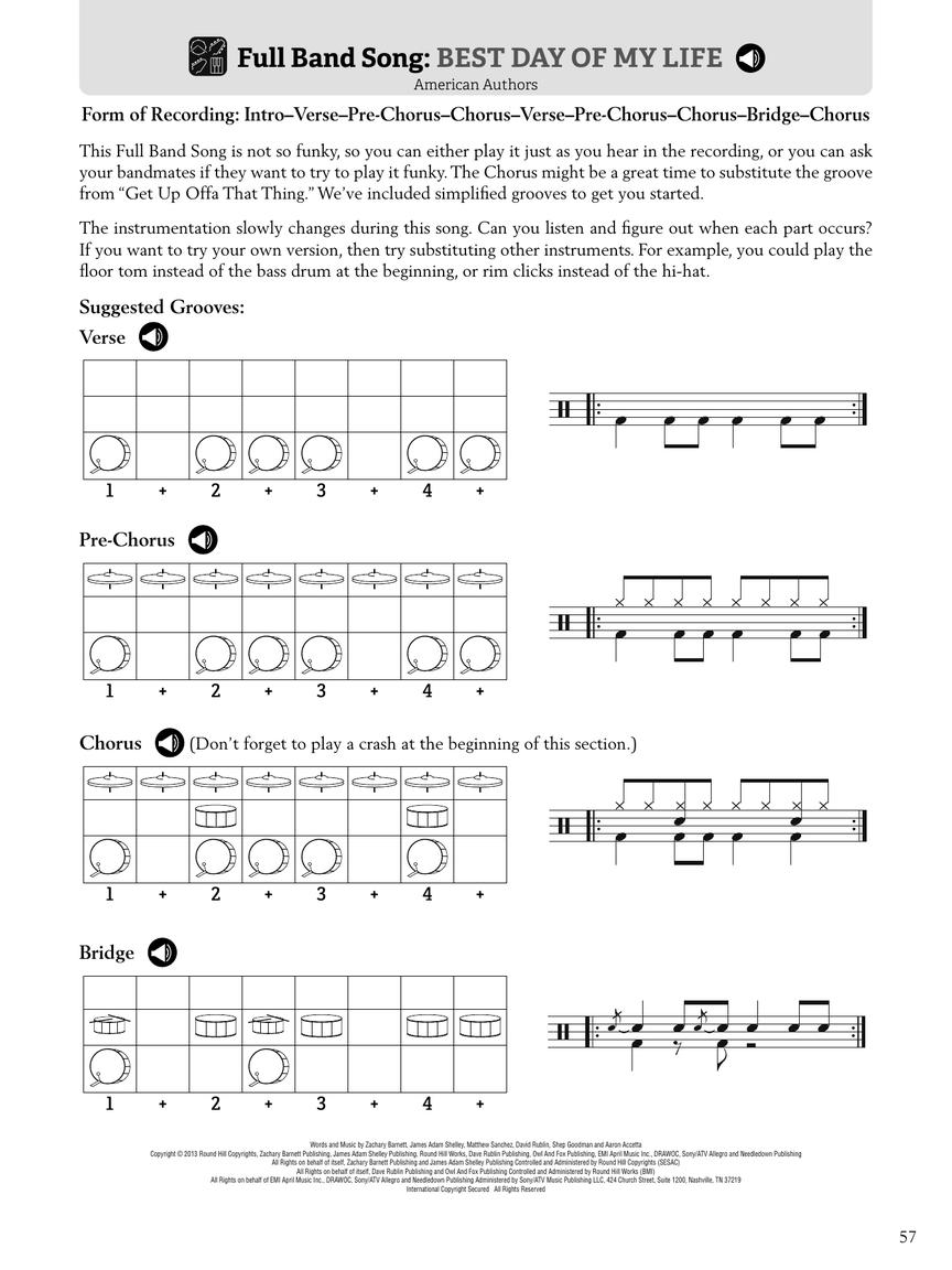 The Modern Band Method series provides a guided lesson plan for the absolute beginner, complete with audio tracks, video lessons, and many popular songs by the biggest artists of the day! This drum method works in tandem with the other instrument methods in the series, allowing students to play the same songs together as a full band!