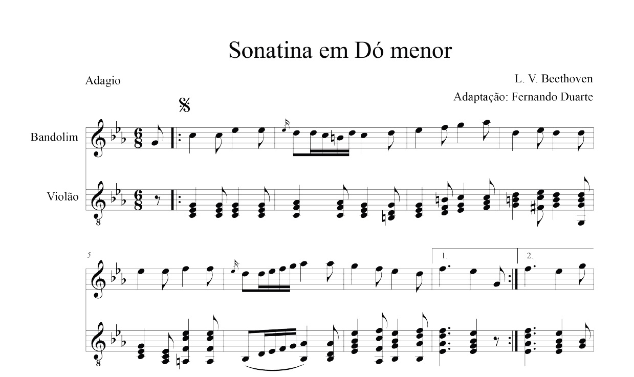 Dentro das comemorações dos 250 anos do nascimento de Beethoven, este lançamento traz duas sonatinas para bandolim e violão, adaptadas pelo bandolinista e professor Fernando Duarte. Escritas na juventude do compositor, suas peças para bandolim são parte essencial do repertório erudito do instrumento e pela primeira vez ganham edição no Brasil.