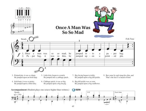 From the very first lessons in Book 1, students are making music as they explore the piano keyboard through fun improvisation pieces called My Own Song. The beginning of the book introduces finger numbers, the black-key and white-key groups, and basic rhythm patterns.