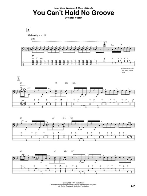 30 great slap bass songs are included in this collection of note-for-note bass transcriptions with tab.