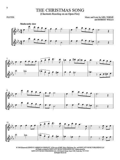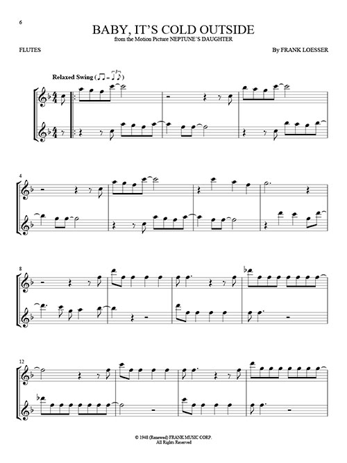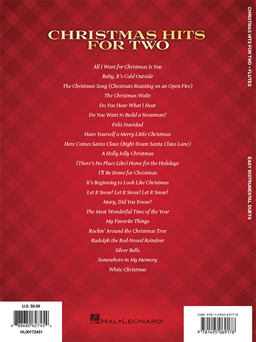 22 terrific holiday duets for instrumentalists are featured in this collection: All I Want for Christmas Is You · Baby, It's Cold Outside · The Christmas Song (Chestnuts Roasting on an Open Fire) · Do You Want to Build a Snowman? · Feliz Navidad · Have Yourself a Merry Little Christmas · It's Beginning to Look like Christmas · Let It Snow! Let It Snow! Let It Snow! · Mary, Did You Know? · Rockin' Around the Christmas Tree · Silver Bells · White Christmas · and more. Arrangements work for two flutes or can also be used with other woodwind or brass titles from this series.