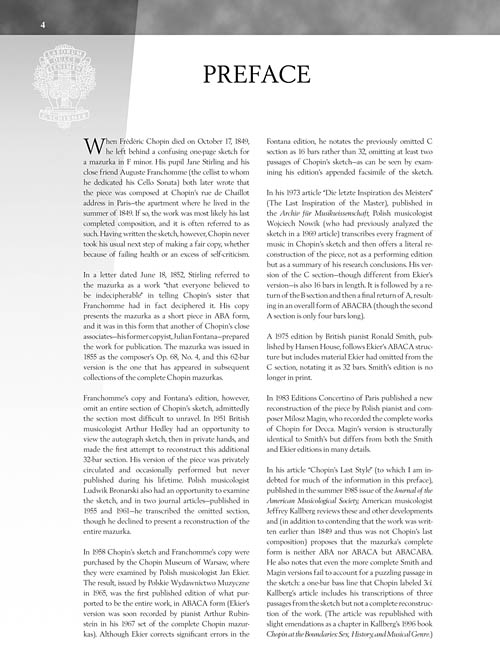 This new reconstruction of Chopin's final composition is the first version to account for every measure of the composer's sketch. Offers convincing new solutions for the mysterious and almost illegible manuscript's most confusing passages.