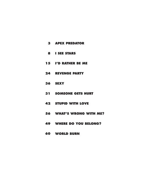 10 arranjos fáceis para piano com letras: Apex Predator · I See Stars · I'd Rather Be Me · Revenge Party · Sexy · Someone Gets Hurt · Stupid with Love · What's Wrong with Me? · Where Do You Belong? · World Burn.