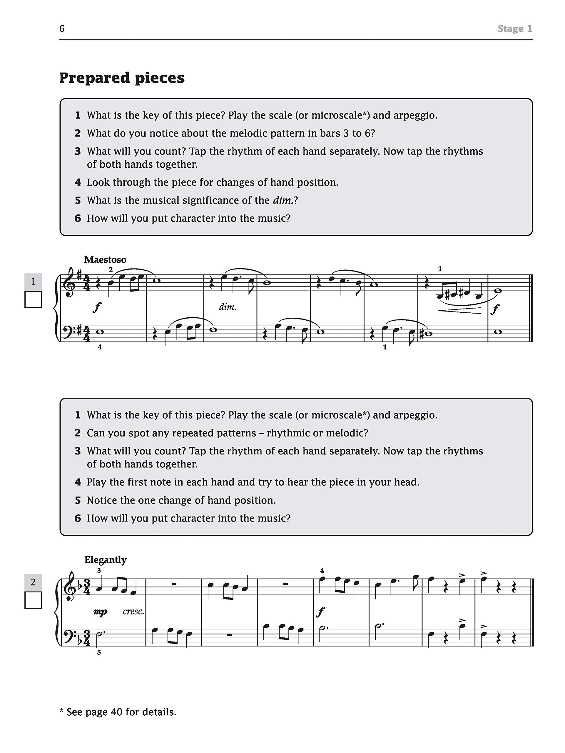 Agora, mais do que nunca, a capacidade de ler à primeira vista com fluência é uma parte essencial do treinamento do pianista, seja tocando sozinho, como acompanhante ou em conjunto. Este livro de exercícios foi desenvolvido para ajudar a superar os nervos que podem causar problemas de leitura à primeira vista. Passo a passo ajuda o executante a criar uma imagem completa de cada peça, primeiro através de exercícios rítmicos e melódicos relacionados com problemas específicos, depois pelo estudo de peças preparadas com questões associadas para o aluno responder, e por fim ao real, despreparado teste de leitura à primeira vista. As caixas de seleção para cada estágio permitem que o professor e o aluno mantenham um registro do progresso.