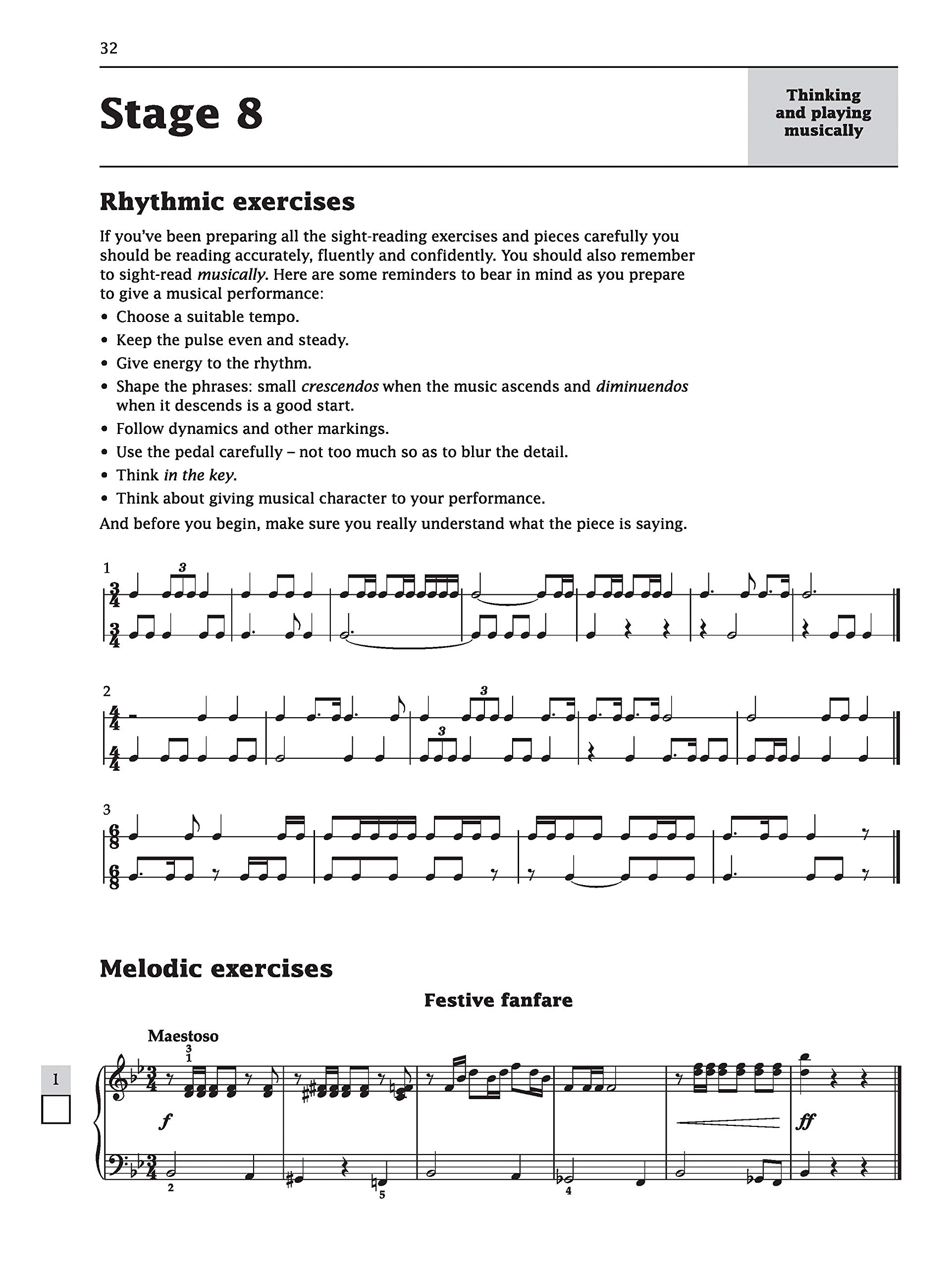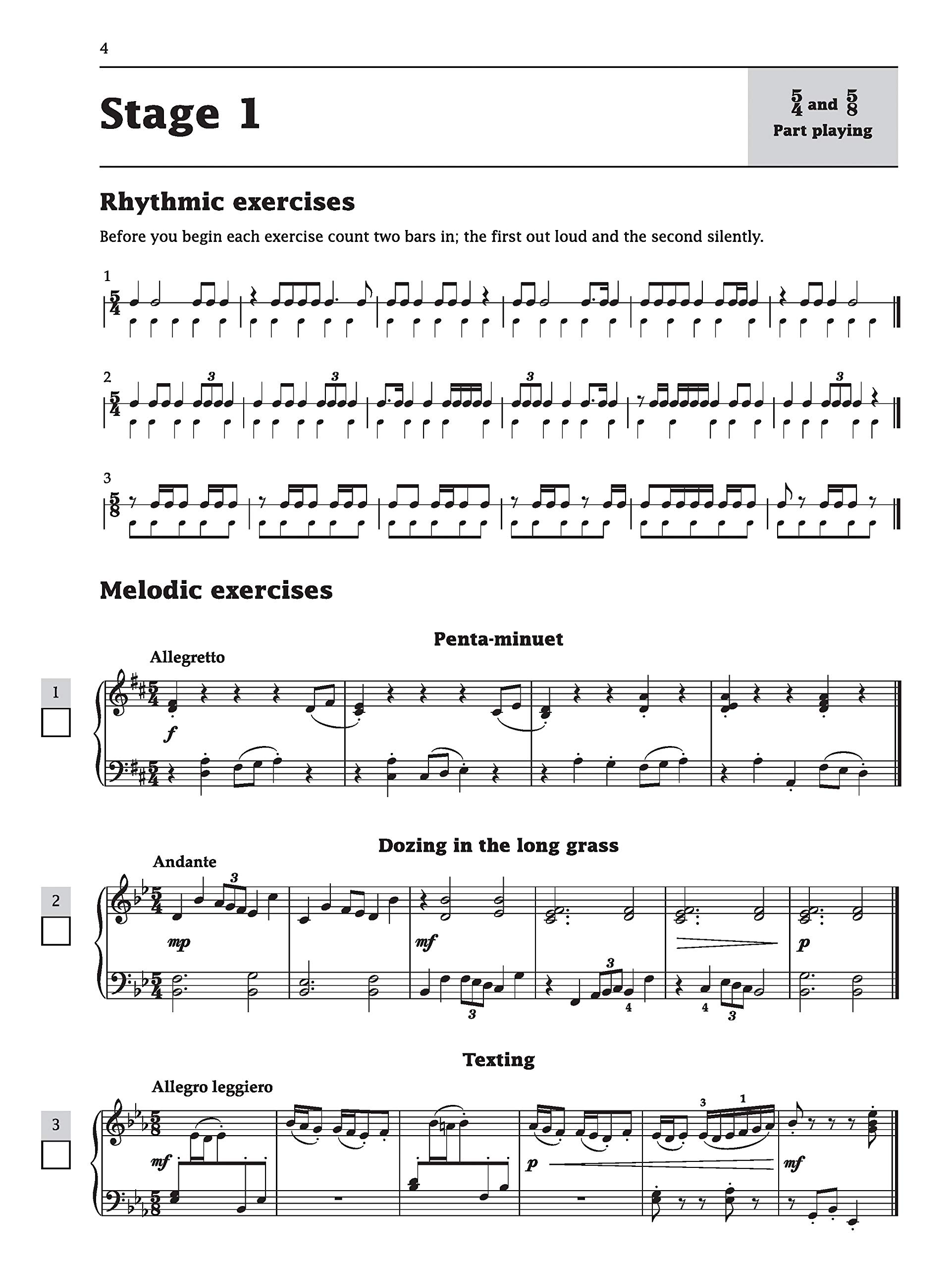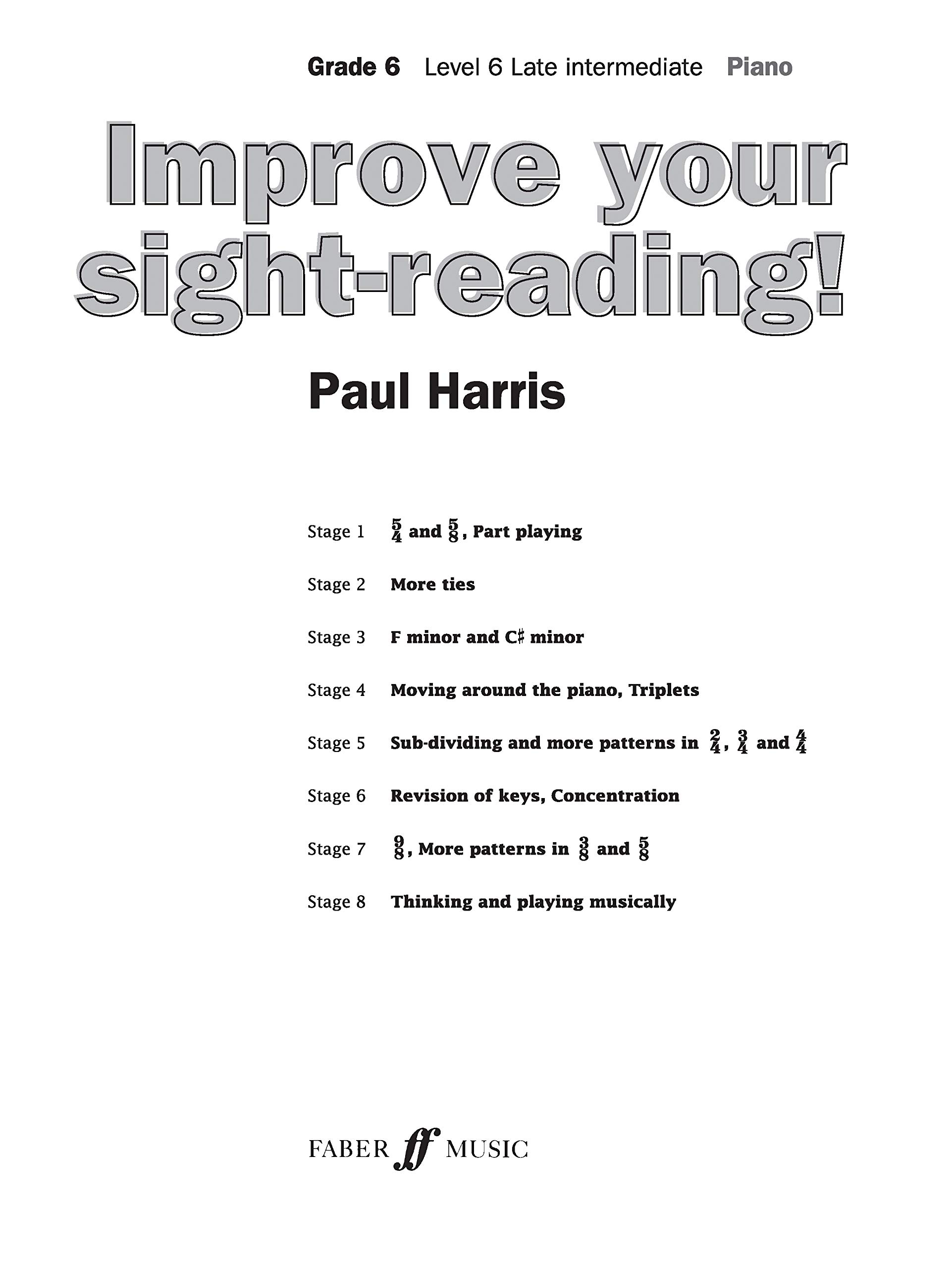 Agora, mais do que nunca, a capacidade de ler à primeira vista com fluência é uma parte essencial do treinamento do pianista, seja tocando sozinho, como acompanhante ou em conjunto. Este livro de exercícios foi desenvolvido para ajudar a superar os nervos que podem causar problemas de leitura à primeira vista. Passo a passo ajuda o executante a criar uma imagem completa de cada peça, primeiro através de exercícios rítmicos e melódicos relacionados com problemas específicos, depois pelo estudo de peças preparadas com questões associadas para o aluno responder, e por fim ao real, despreparado teste de leitura à primeira vista. As caixas de seleção para cada estágio permitem que o professor e o aluno mantenham um registro do progresso.