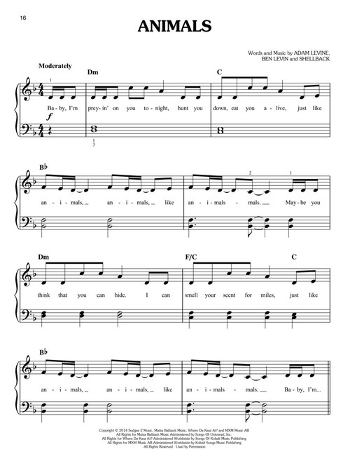 Almost 70 contemporary hits released since 2010 in easy piano arrangements with lyrics.