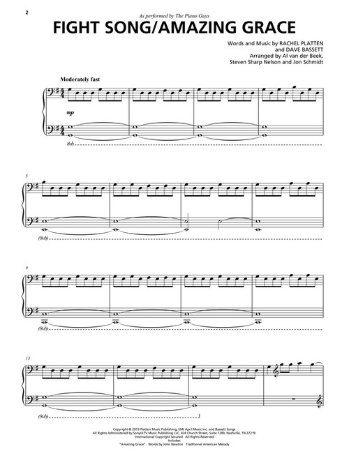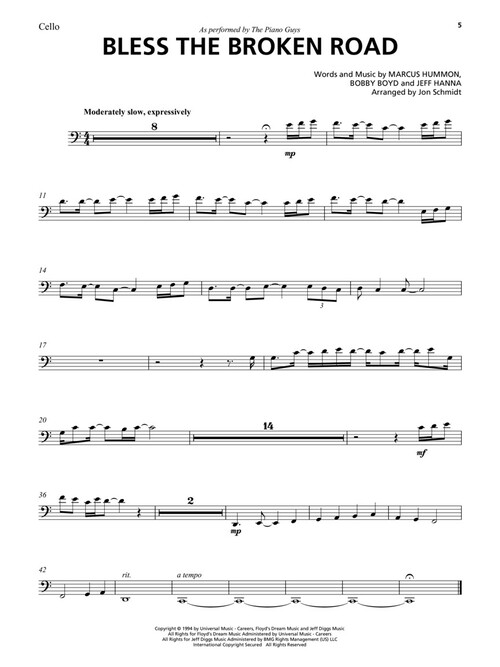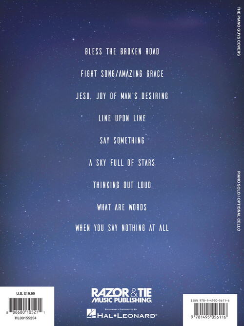 Arranjos de piano solo com uma parte opcional de violoncelo para as músicas, incluindo: Bless the Broken Road · Fight Song · Jesu, Joy of Man's Desiring · Line upon Line · Say Something · A Sky Full of Stars · Thinking Out Loud · What Are Words · When You Say Nothing at All.
