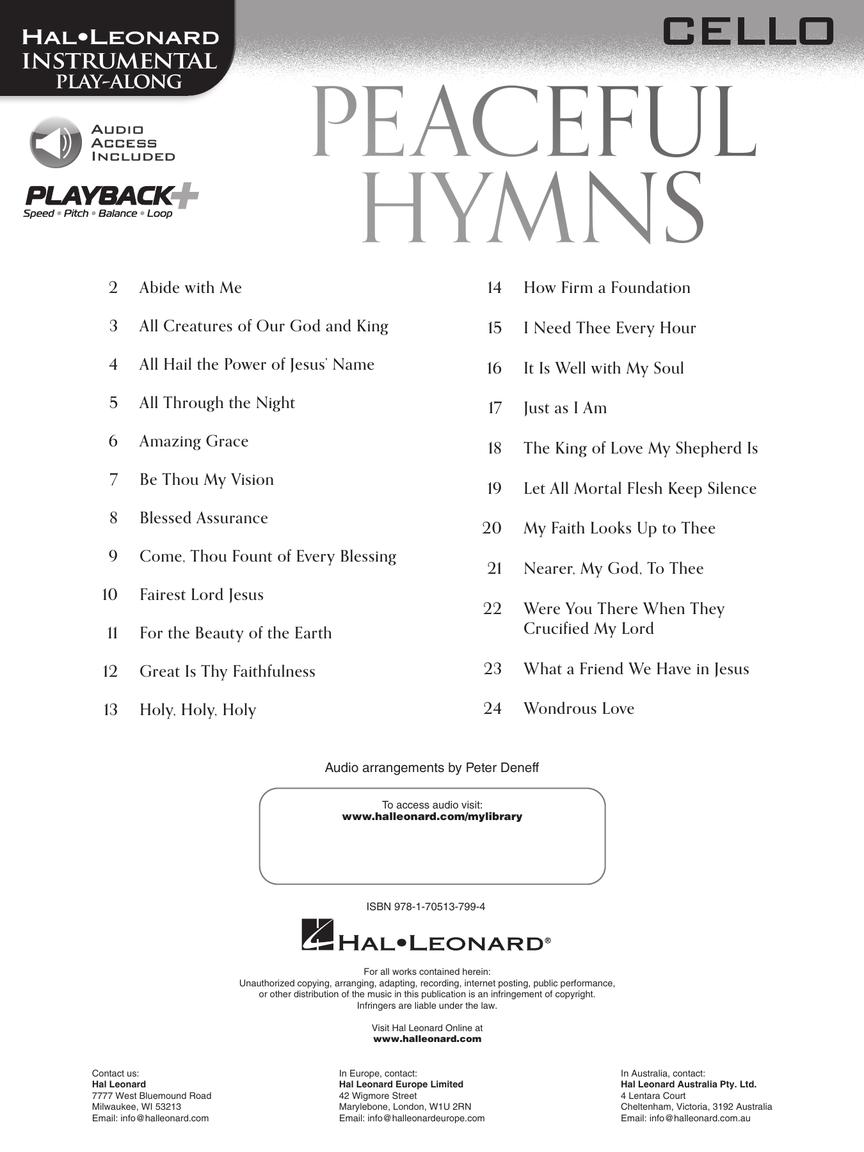 23 hinos relaxantes arranjados para instrumentistas com faixas de acompanhamento gravadas profissionalmente para diversão ao longo do tempo. Inclui: Abide with Me • Amazing Grace • Blessed Assurance • Come, Thou Fount of Every Blessing • For the Beauty of the Earth • Great Is Thy Faithfulness • Holy, Holy, Holy • It Is Well with My Soul • Just As I Am • The King of Love My Shepherd Is • Nearer, My God, to Thee • What a Friend We Have in Jesus • e outras.