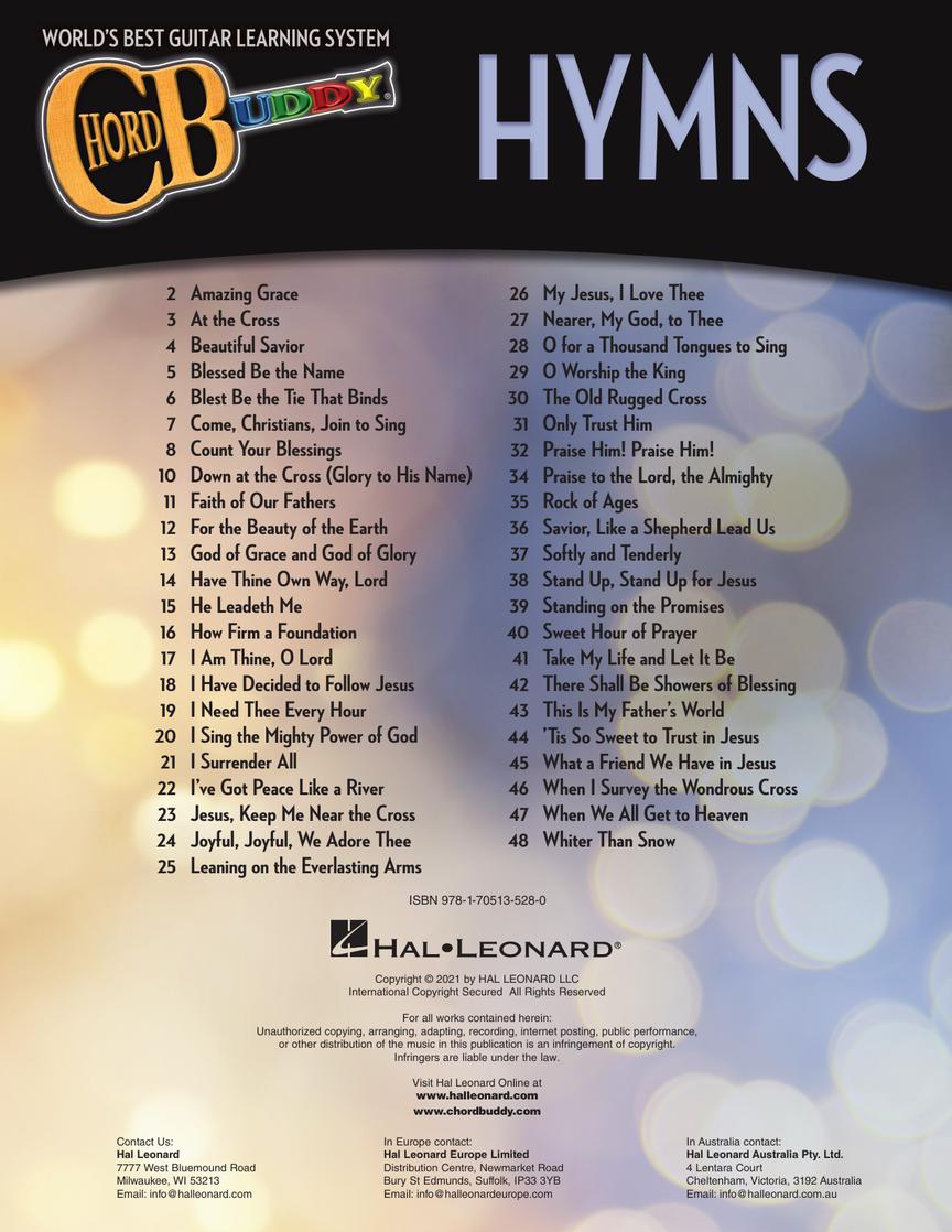 Play your favorite hymns while you learn to play the guitar with the world's best guitar learning system, the ChordBuddy! This songbook includes 45 sacred favorites in color-coded arrangements that correspond to the device colors: Amazing Grace • Beautiful Savior • Come, Christians, Join to Sing • For the Beauty of the Earth • God of Grace and God of Glory • I Need Thee Every Hour • I Surrender All • Joyful, Joyful, We Adore Thee • O Worship the King • Rock of Ages • Savior, like a Shepherd Lead Us • This Is My Father's World • What a Friend We Have in Jesus • and more.