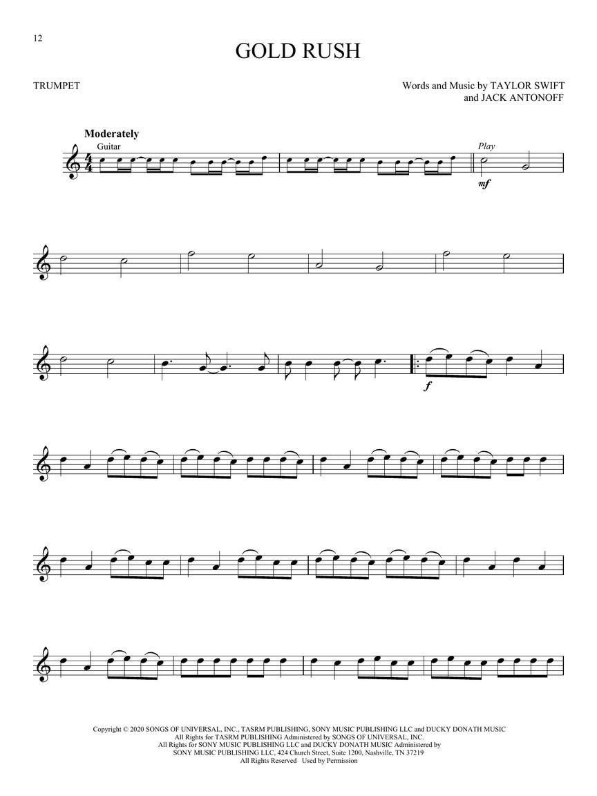 14 songs from the two 2020 album releases by the ever-popular and musically prolific Taylor Swift in arrangements for instrumentalists with approximately one year of playing experience. Each of these books also includes demonstration and play-along audio tracks online for download or streaming. Songs include: August • Cardigan • Exile • Gold Rush • Long Story Short • No Body, No Crime • Seven • Willow • and more.