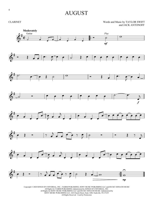 14 songs from the two 2020 album releases by the ever-popular and musically prolific Taylor Swift in arrangements for instrumentalists with approximately one year of playing experience. Each of these books also includes demonstration and play-along audio tracks online for download or streaming. Songs include: August • Cardigan • Exile • Gold Rush • Long Story Short • No Body, No Crime • Seven • Willow • and more.