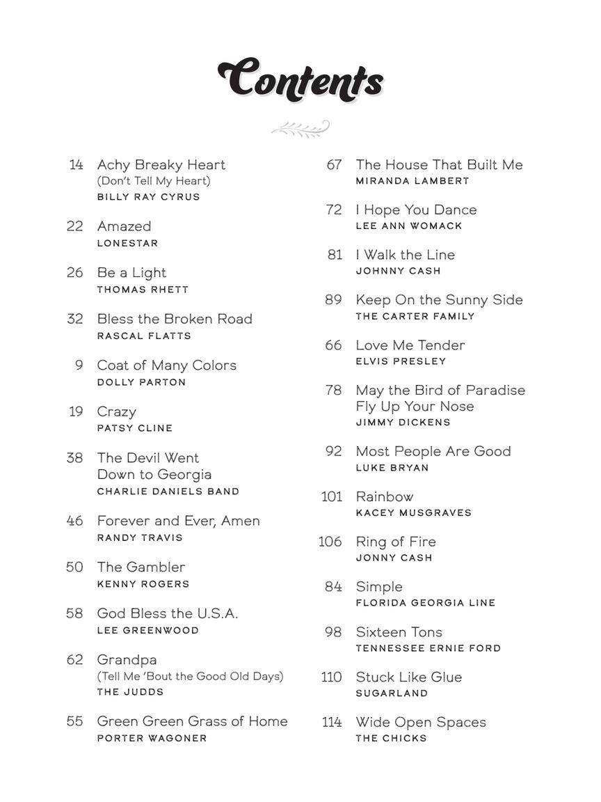 Agora as crianças podem tocar 25 músicas country favoritas com confiança de imediato! Esta coleção de arranjos fáceis de piano apresenta linhas de melodia simples e padrões de acompanhamento fáceis de ler, bem como notas musicais e dicas de prática para cada música. Inclui:Bless the Broken Road (Rascal Flatts) • Crazy (Patsy Cline) • The Devil Went Down to Georgia (Charlie Daniels Band) • The Gambler (Kenny Rogers) • God Bless the U.S.A. (Lee Greenwood) • I Hope You Dance (Lee Ann Womack) • Love Me Tender (Elvis Presley) • Ring of Fire (Johnny Cash) • Sixteen Tons (Tennessee Ernie Ford) • e outras.