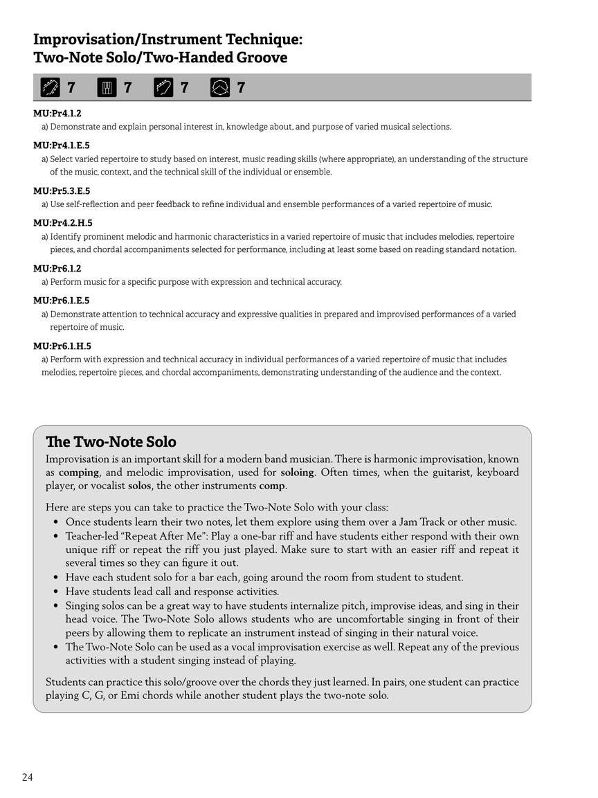 • Lessons about technique, reading music, composing a song, writing lyrics, soloing, improvising and more