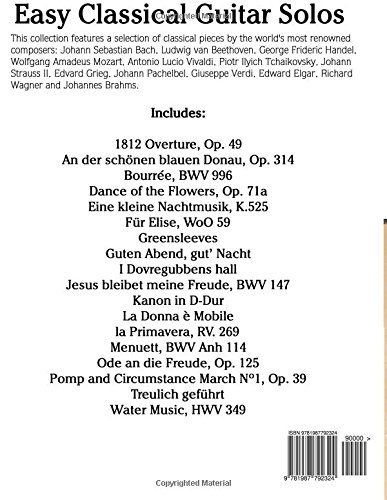 This collection features a selection of classical pieces by the world's most renowned composers: Johann Sebastian Bach, Ludwig van Beethoven, George Frideric Handel, Wolfgang Amadeus Mozart, Antonio Lucio Vivaldi, Piotr Ilyich Tchaikovsky, Johann Strauss II, Edvard Grieg, Johann Pachelbel, Giuseppe Verdi, Edward Elgar, Richard Wagner and Johannes Brahms.