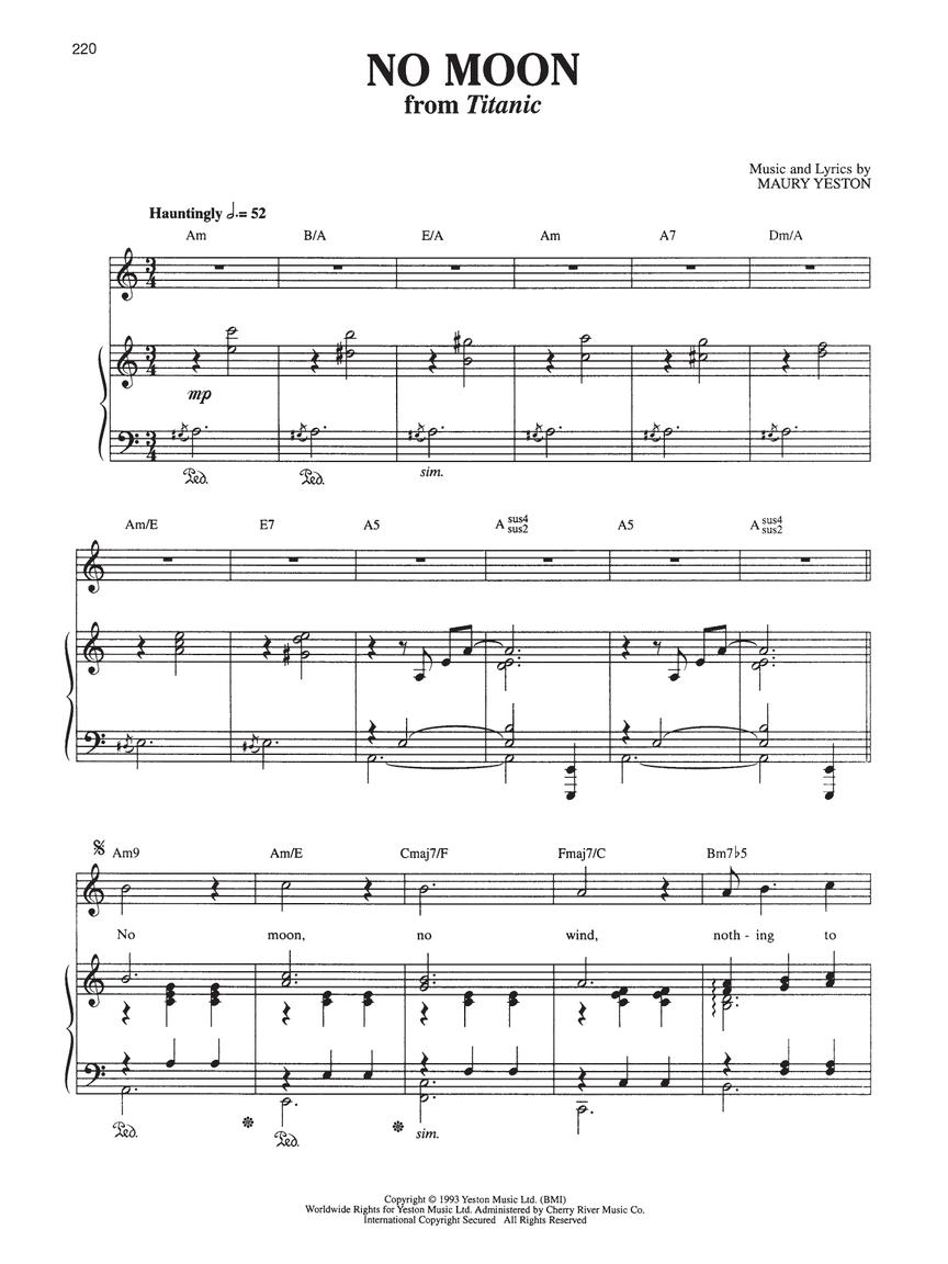 35 songs. Highlights: Alive! (Jekyll & Hyde) • Almost Like Being in Love (Brigadoon) • Any Dream Will Do (Joseph and the Amazing Technicolor Dreamcoat) • Buddy's Blues (Follies) • Corner of the Sky (Pippin) • Hey There (The Pajama Game) • I Can't Stand Still (Footloose) • I Don't Care Much (Cabaret) • I'm Martin Guerre (Martin Guerre) • Mama Says (Footloose) • The Mason (Working) • Mister Cellophane (Chicago) • Night of My Nights (Kismet) • No Moon (Titanic) • Oh, Is There Not One Maiden Breast (The Pirates of Penzance) • The Old Red Hills of Home (Parade) • One Song Glory (Rent) • The Proposal (Titanic) • Quasimodo (When Pigs Fly) • Sunset Boulevard (Sunset Boulevard) • This Is Not Over Yet (Parade) • Tomorrow Belongs to Me (Cabaret) • What Can You Lose (Dick Tracy, film) • What You'd Call a Dream (Diamonds) • Your Eyes (Rent)