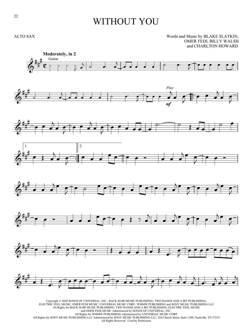 Uma dúzia de sucessos quentes estão incluídos nesta coleção perfeita para novos instrumentistas. Possui acesso online para demonstração de áudio e faixas de apoio para download ou streaming para ajudá-lo a ouvir como a música deve soar e, em seguida, tocar junto e soar como um profissional! As músicas incluem: Adore You (Harry Styles) • Bad Habits (Ed Sheeran) • Blinding Lights (The Weeknd) • drivers license (Olivia Rodrigo) • Kings & Queens (Ava Max) • Therefore I Am (Billie Eilish) • Willow (Taylor Swift) • and more.
