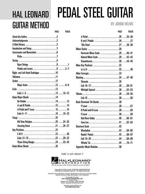 This comprehensive manual includes easy-to-follow tablature, diagrams and pictures along with step-by-step instructions on set-up, accessories, and other necessities. You'll learn all the parts of the pedal steel guitar, chords and scales, and great songs and licks that you can play while learning. The CD includes demonstrations of the songs.