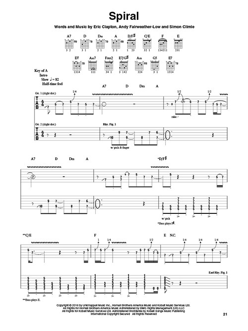This 2016 Billboard Rock Chart-topping album from Clapton includes a mix of blues and pop standard covers with a few EC originals. Our folio includes tab transcriptions with lyrics of all the tunes, including: Cypress Grove • I Dreamed I Saw St. Augustine • I'll Be Seeing You • Little Man You've Had a Busy Day • Stones in My Passway • and more.