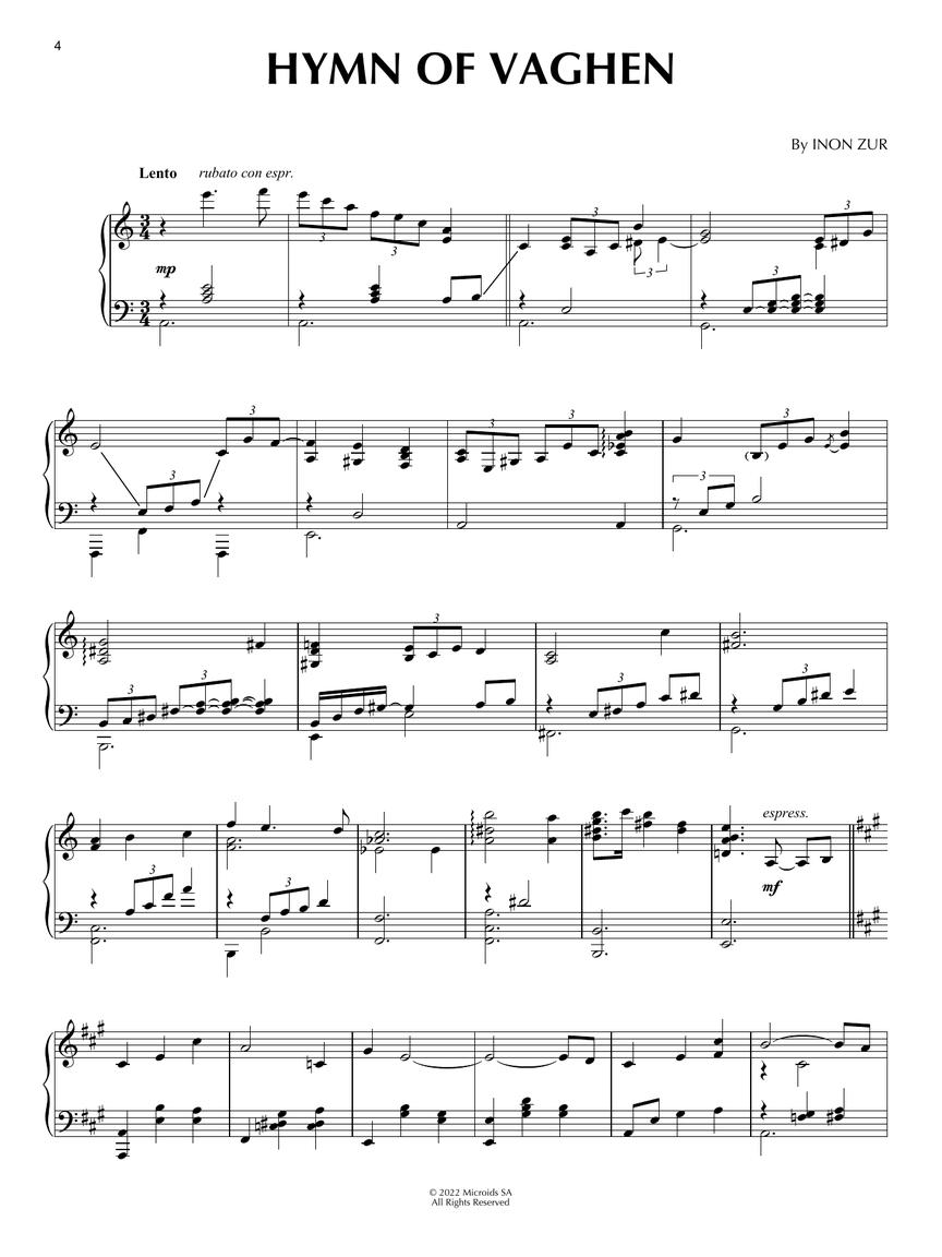 12 piano solo arrangements from Inon Zur's passionate and personal soundtrack from the game that features a young pianist. Titles include: Bitter Liberation • Dana Roze • Dreams to Be Broken • Four Legs • Hymn of Vaghen • Kate Walker • Leon Kobatis • A Nice Person • A Quiet Place • Rising for Adventure • Shattered Destiny • Those Lost Days.