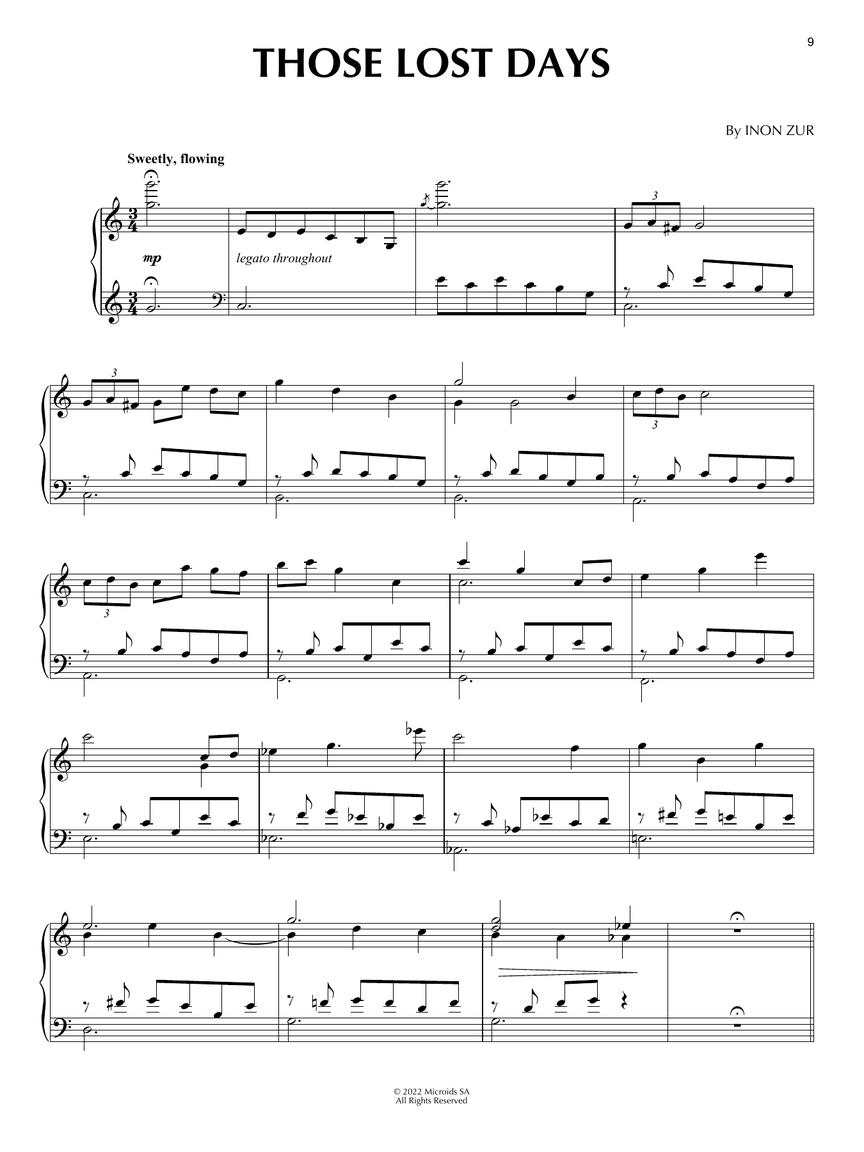 12 piano solo arrangements from Inon Zur's passionate and personal soundtrack from the game that features a young pianist.